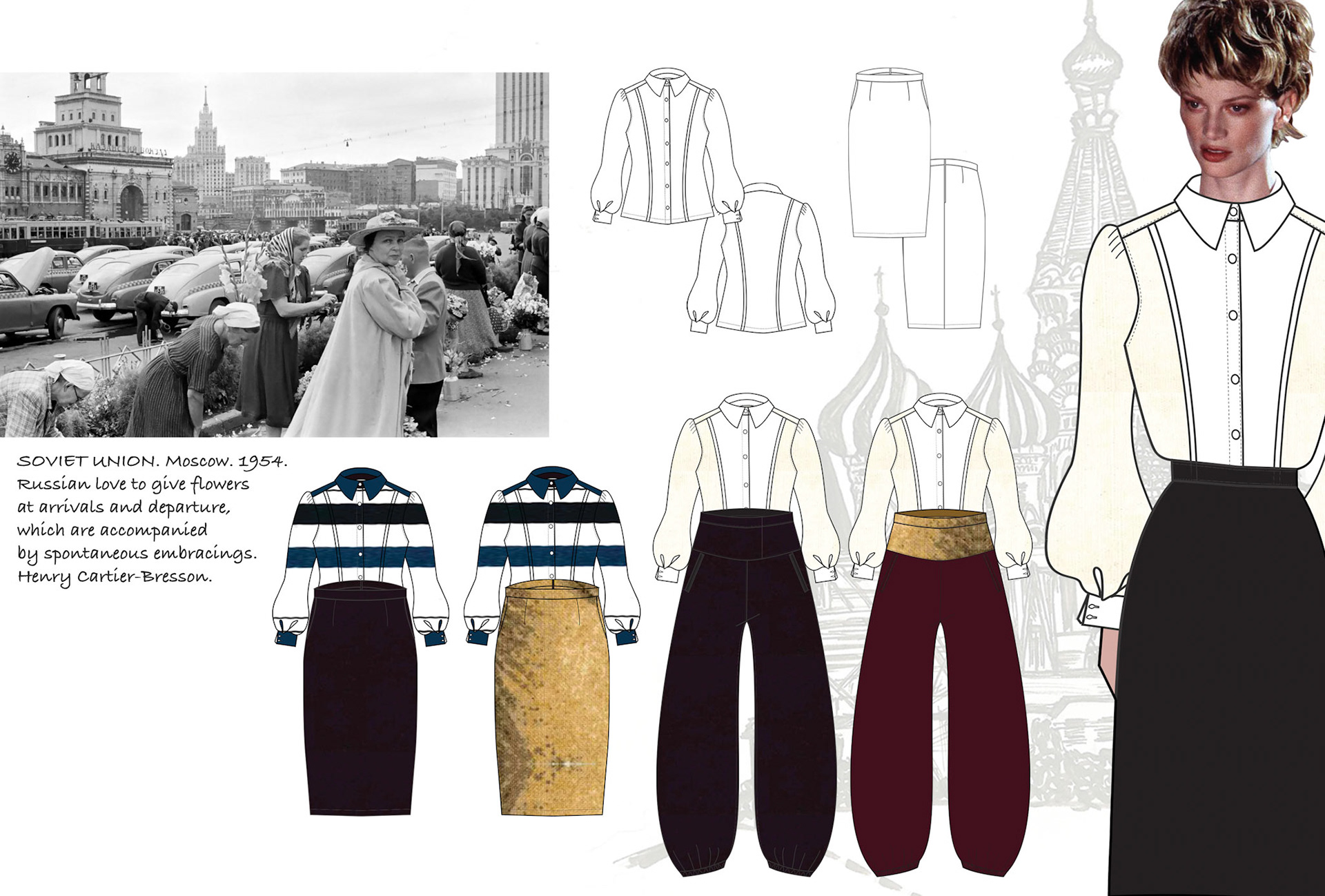 Inspired in Henry Cartier Bresson pictures in his trip to Moscow Soviet Union 1954 -55 The working class and ordinary life in that period adapted to this modern world.